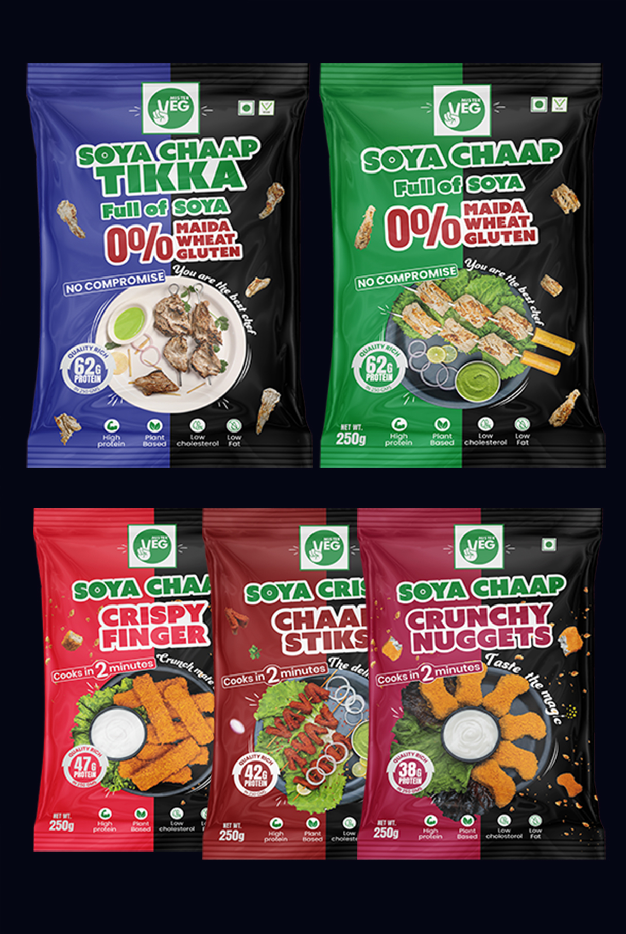 Soya Chaap + Soya Chaap Tikka + Soya Crispy Chaap Stiks + Soya Chaap Crispy Finger + Soya Chaap Crunchy Nuggets