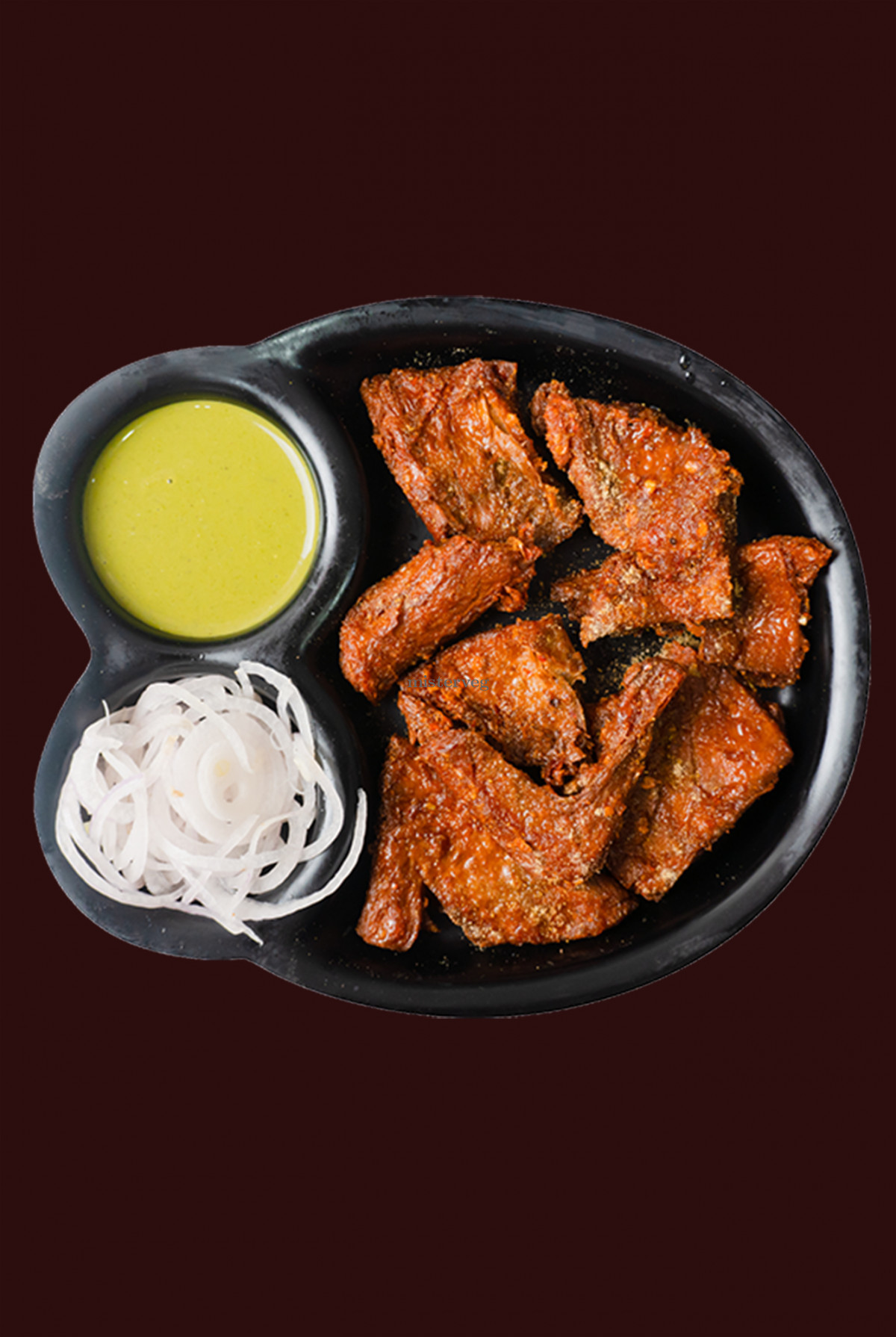 Place a deep frying pan on medium heat. Add enough oil to completely submerge the pieces of Soya Tikka Fry.